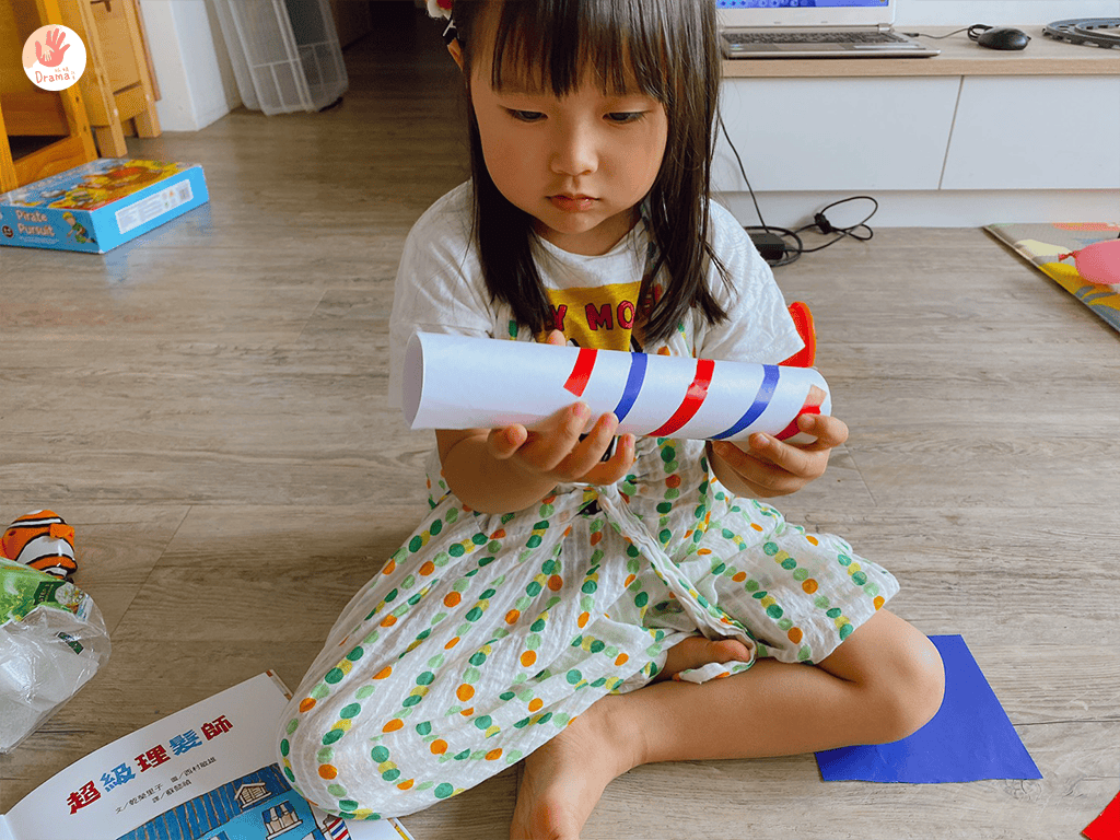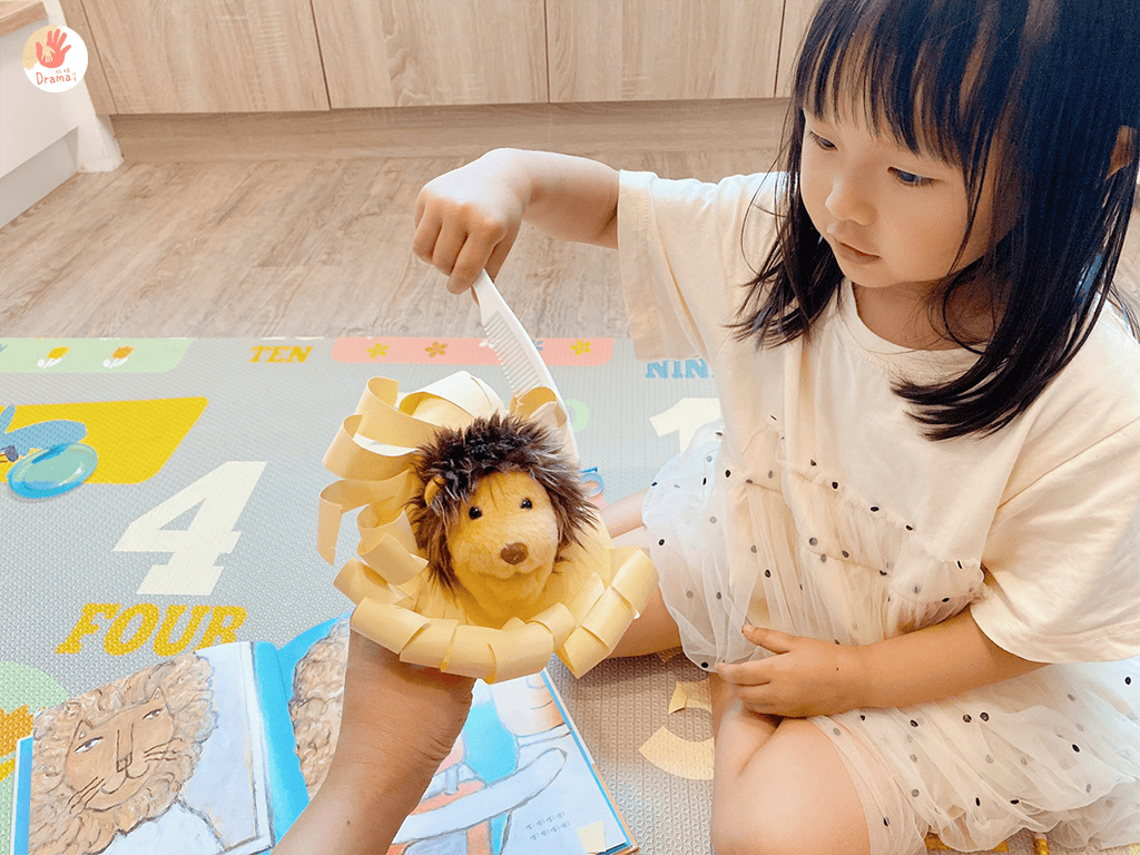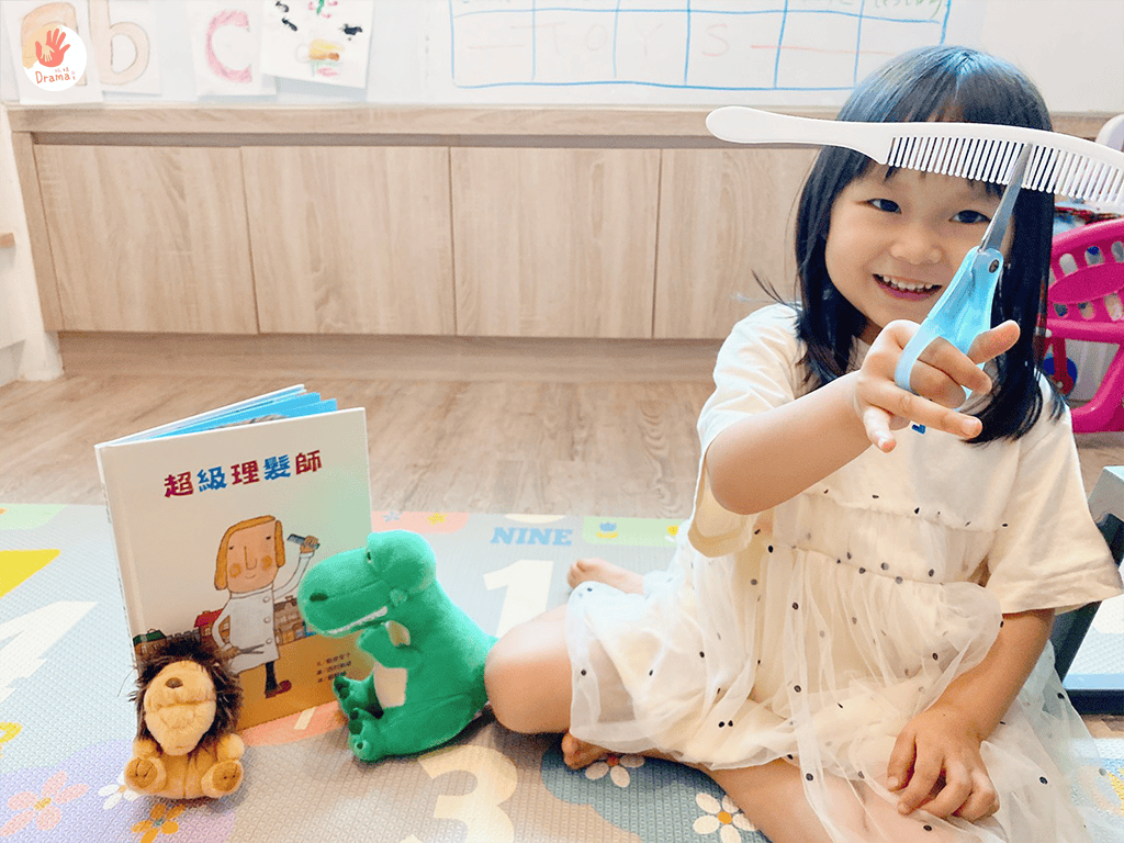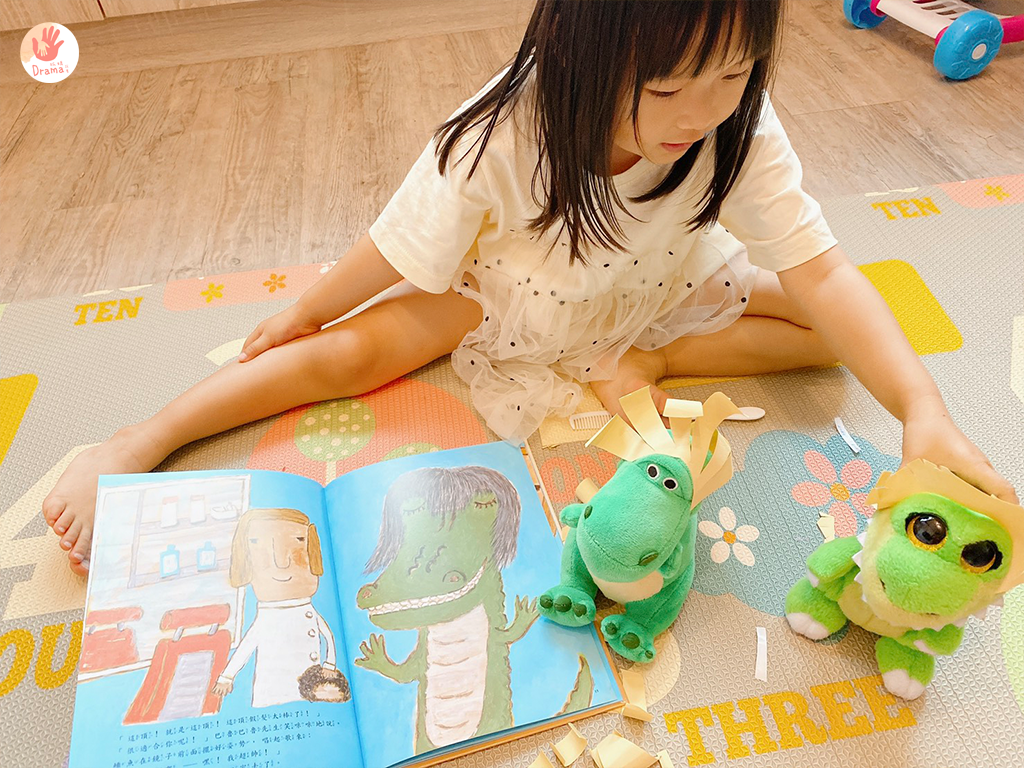 之前我們也有搭配毛線剪髮,這部分也可以獨立玩好久,但加上繪本,真的會讓角色扮演有更多樂趣