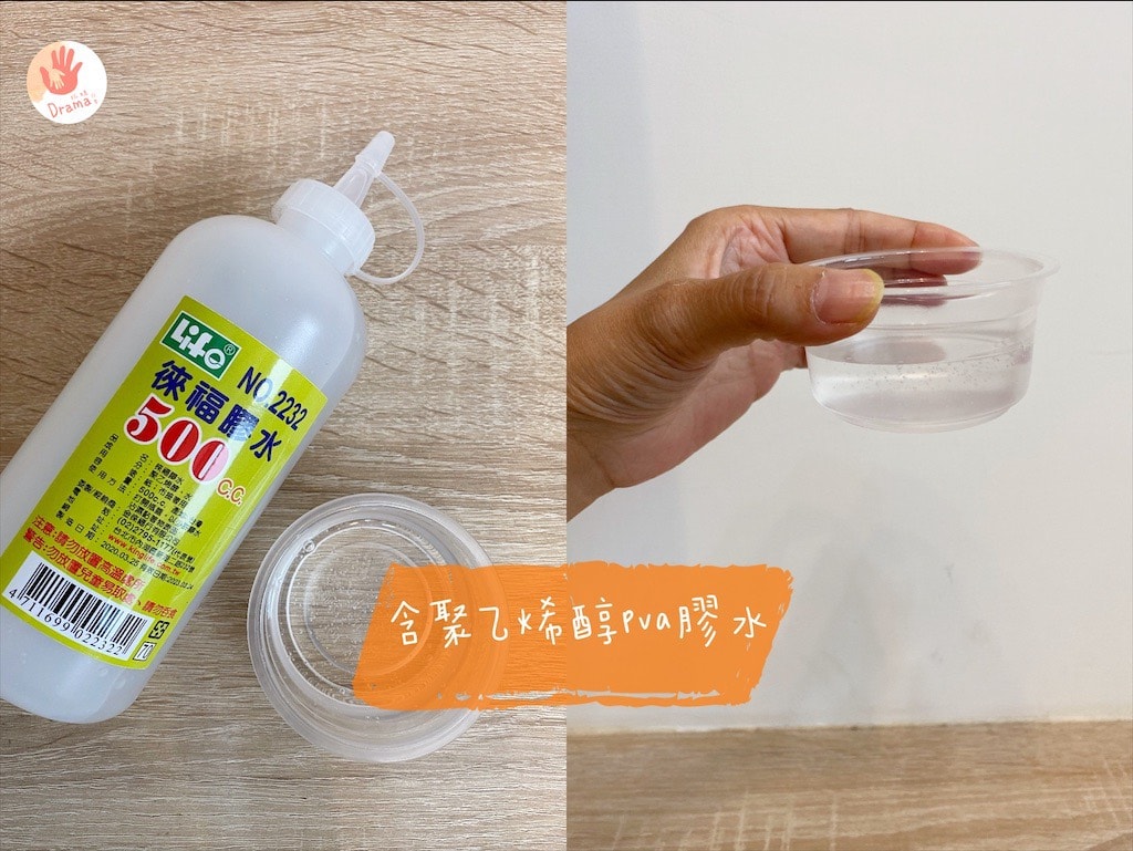 步驟1:塑膠容器倒入膠水,想做大一點就可以加多一點