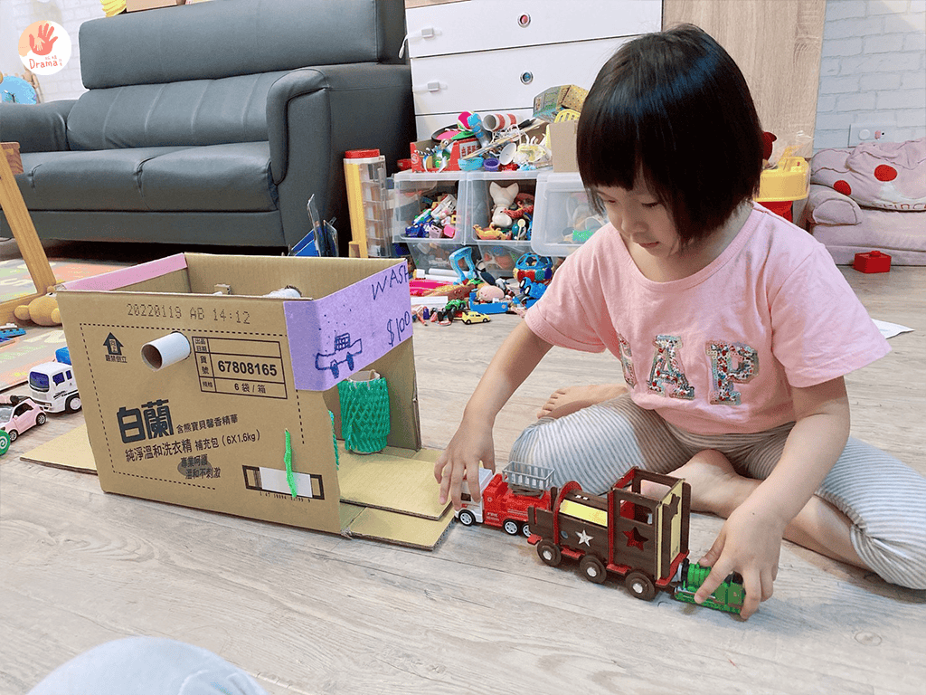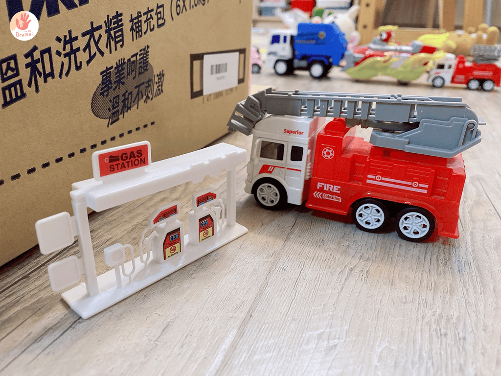 還說那加油站在哪!馬麻立刻拿出玩具加油站,完全符合女鵝要的劇情,大家一起居家玩一波吧