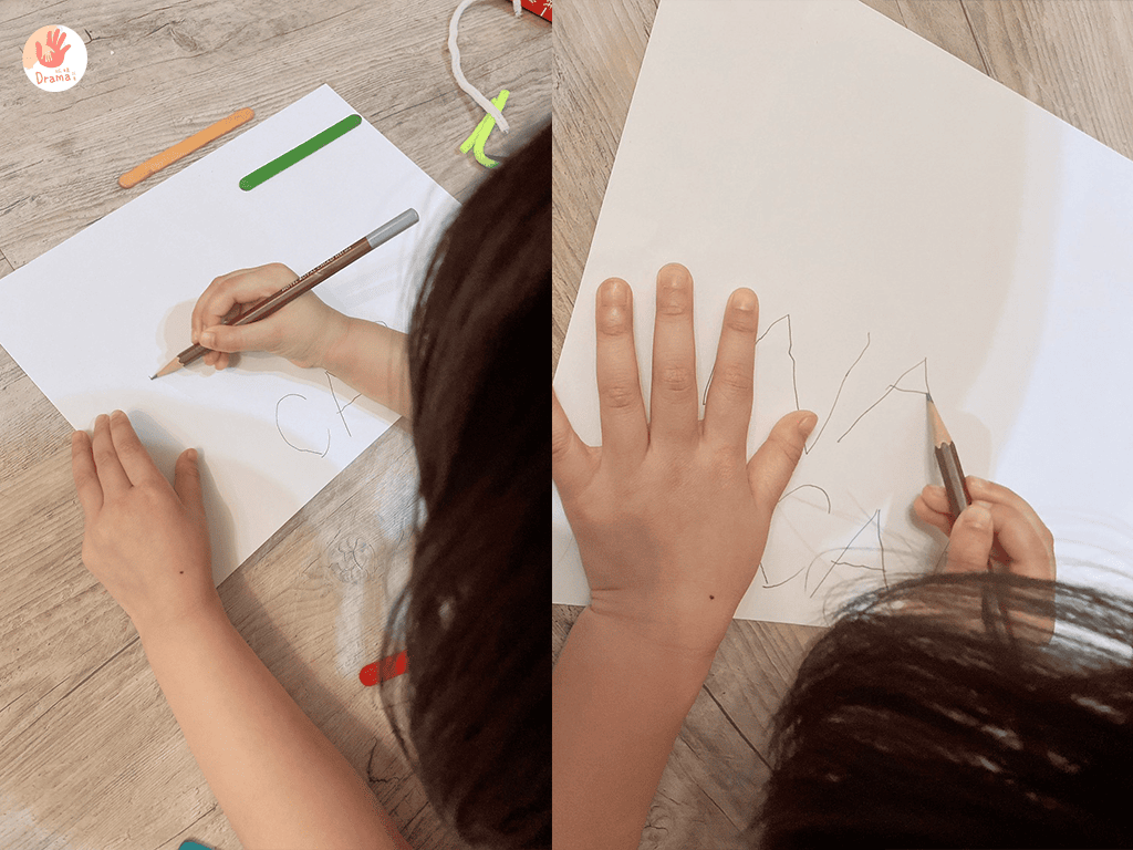 不織布上我會用鉛筆畫上格子,因為小朋友寫字很容易很大,一不小心就可能沒位子寫