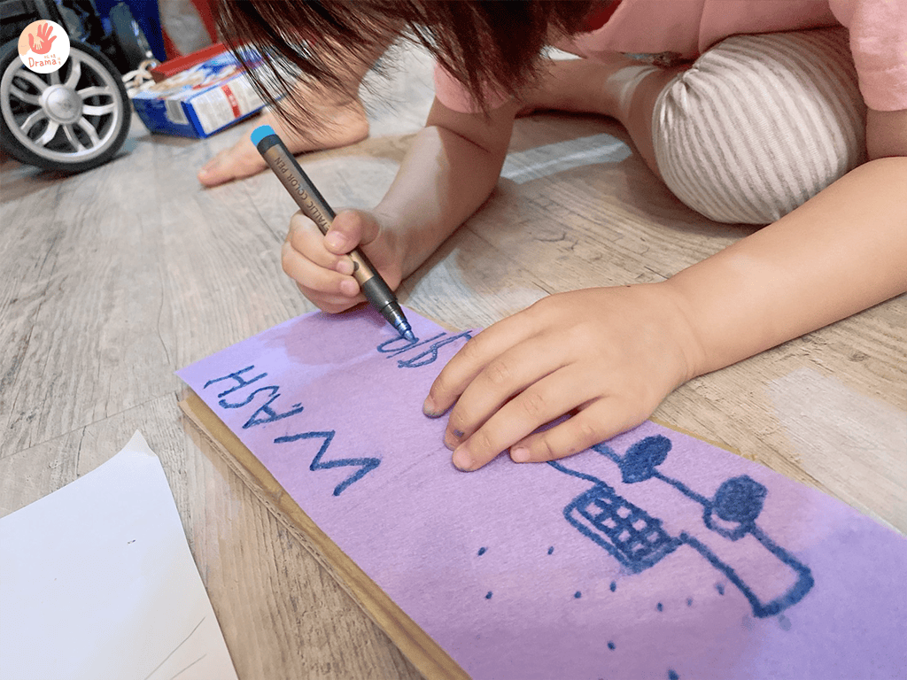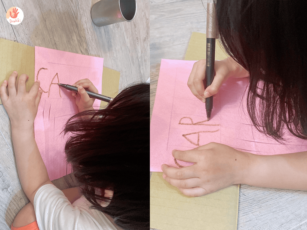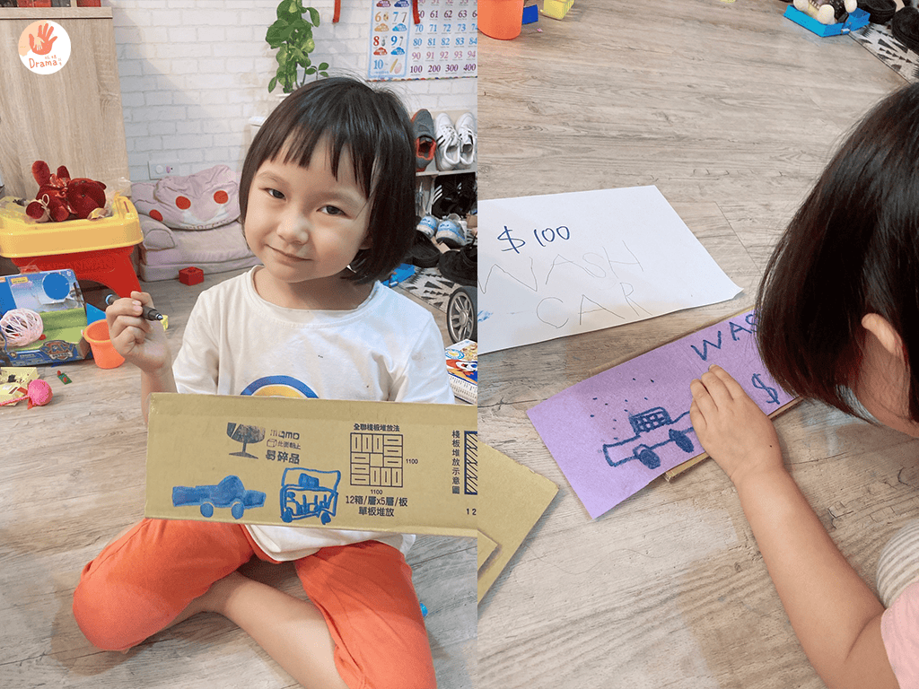 接下來就是招牌要寫上CAR WASH,讓女鵝先在白紙上練寫一遍,也算是再複習一次英文字母