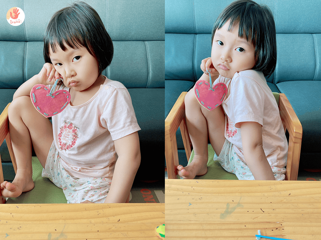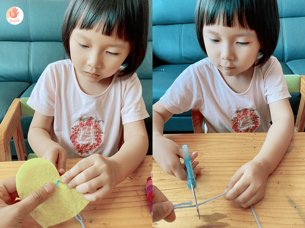 去年疫情在家還是小班時,我們在家玩紙椪糖,完成後還可以延伸玩發光和穿毛線的練習,一個愛心紙板可以玩多種變化(點這裡詳紙椪糖手作分享),今年馬麻就想讓寶貝挑戰稍微有點難度的針線不織布縫愛心。