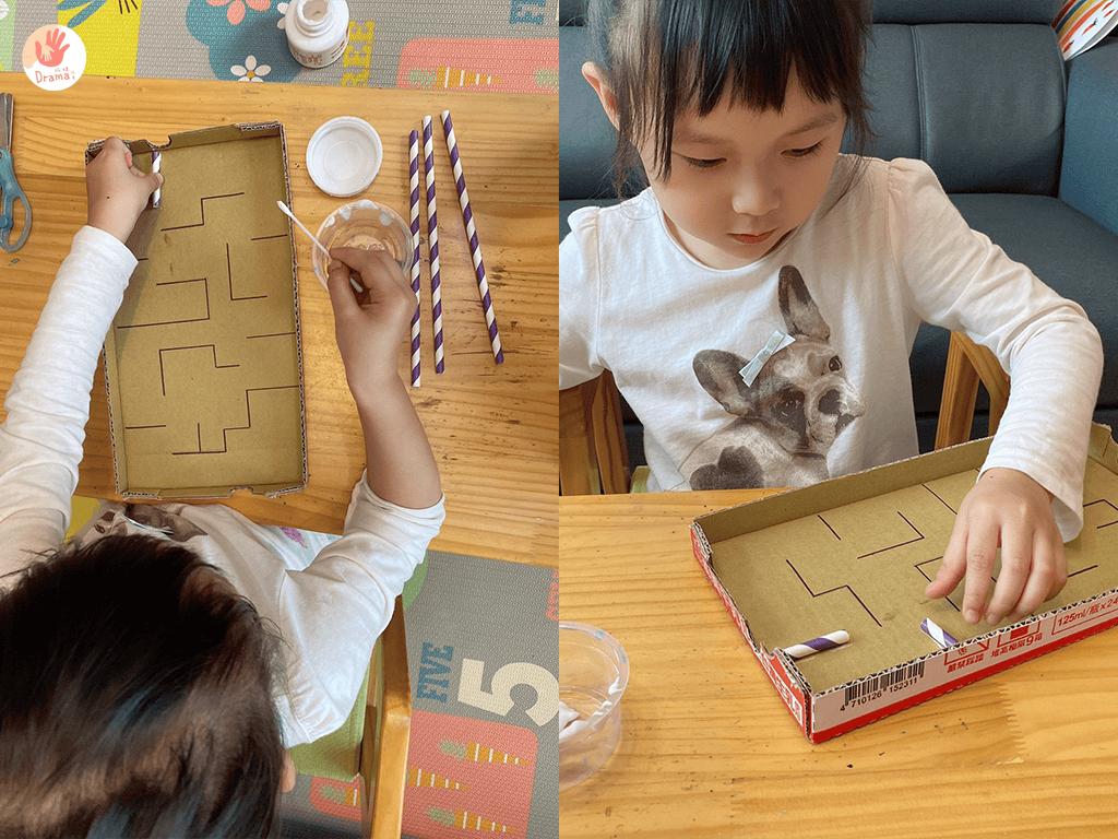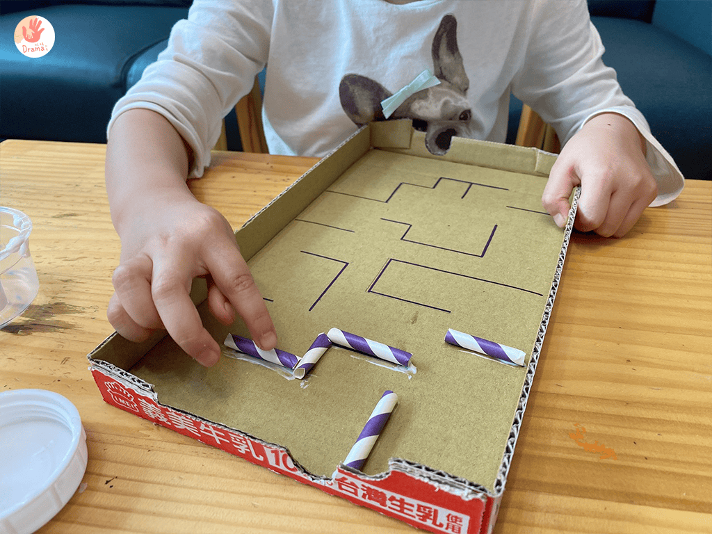 用鞋盒蓋或是義美保久乳的紙盒都可以改造成為紙箱彈珠台,再搭配吸管就可以完成趣味手眼協調訓練,幼幼級手作和寶貝一起完成,玩起來更有成就感。