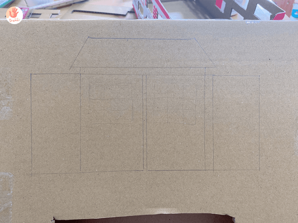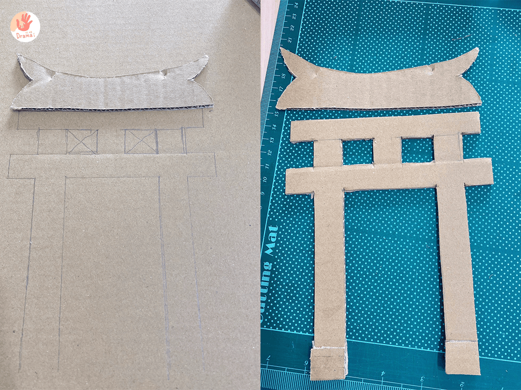 用別的紙箱把廟柱先畫線條再切割下來