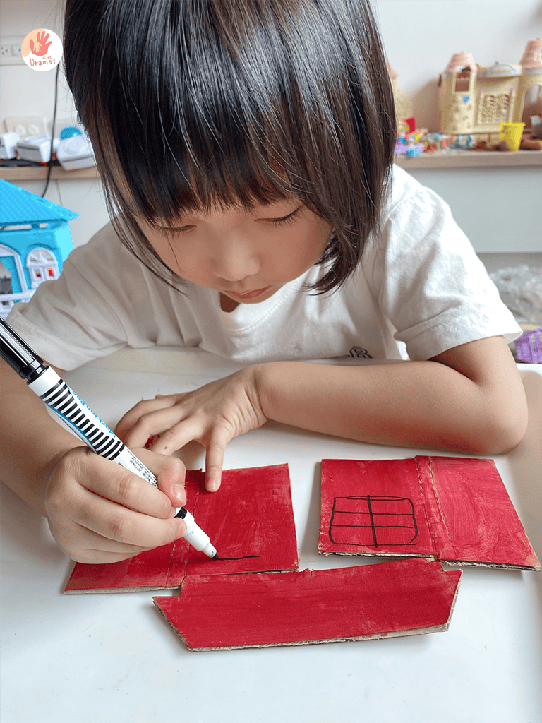 房子的門左右要留二個長方型讓房子為一個ㄇ字型,這樣會比較好站立,不過我連接處留太小,後來ㄇ字和屋頂分開,我就用泡棉膠黏起來
