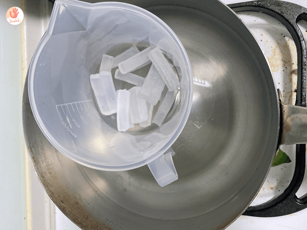 第一次我們放入大約12塊皂基,拿去隔水加熱