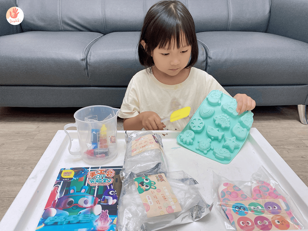 每天女鵝洗完澡會有15分鐘的時間可以看iPad,有一次女鵝看到一個外國姐姐自己在手作香皂,她說她也想要玩,研究了一下皂基的製作有點太複雜,所以決定買現成皂基適合小孩手作的方式。