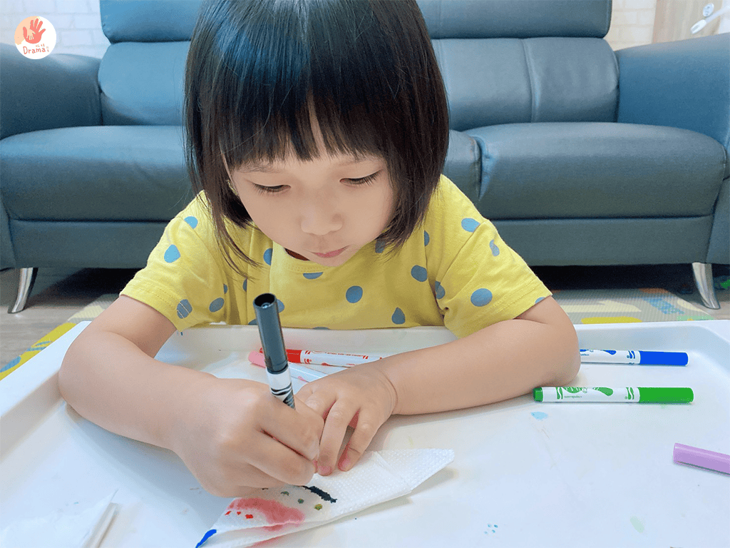 用衛生紙比較薄比較好染上色,如果是用餐巾紙,色筆停留時間就要更長