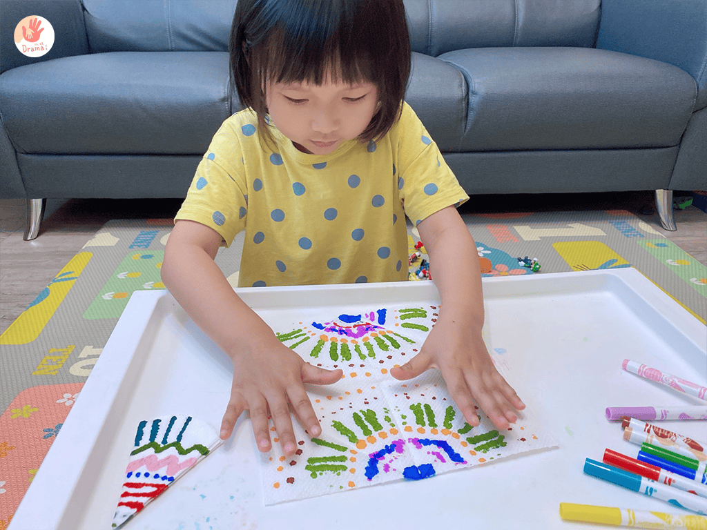 完全就是家中簡單的材料就可以玩的幼幼創作!打開的瞬間,真的會不停驚呼,然後就會一張接一張畫起來,材料就是衛生紙和彩色筆,就是這麼簡單!