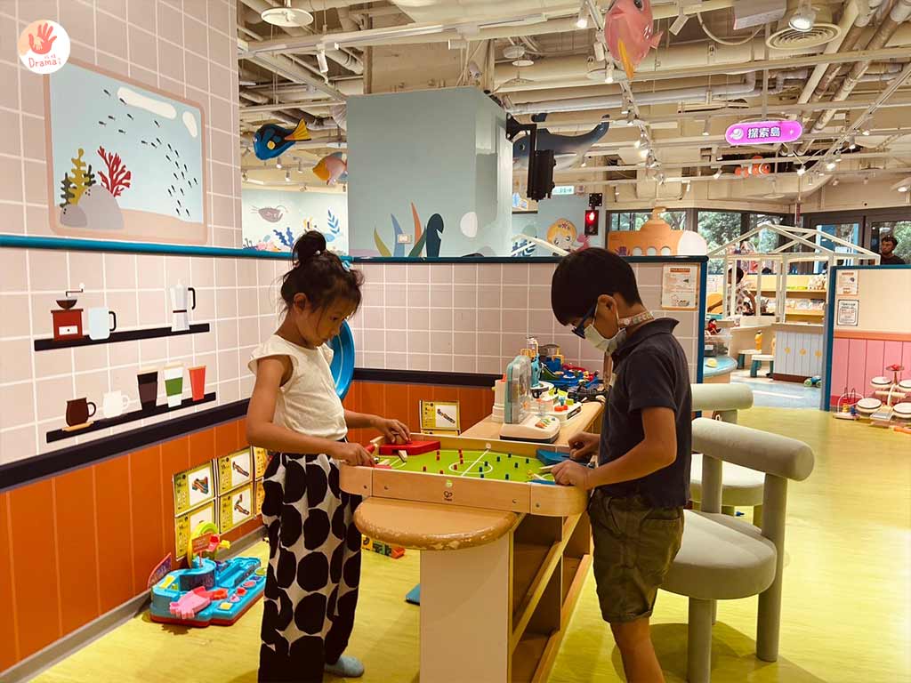 [騎士堡小巨蛋館]這裡比較適合學齡前的小孩,如果是低年級國小生建議要和朋友一起來會比較好玩,這裡的玩具和教具蠻多的,很適合小幼童,這裡的球池溜滑梯拆了,改成大積木,對於中大童來說好玩度減不少