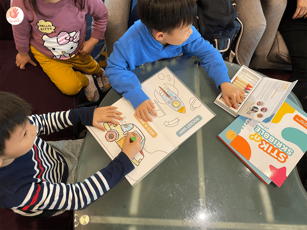 在家或外出只要帶上畫畫玩具,就可以秒安靜,每次用餐抓媽除了帶小玩具,一定會帶著畫畫玩具,因為小孩吃完飯,還想把他們留在飯桌上,就這個方法最棒了。這次家族出遊就連阿公都說:奇怪四個小童怎麼突然無聲,原來是都在畫畫???