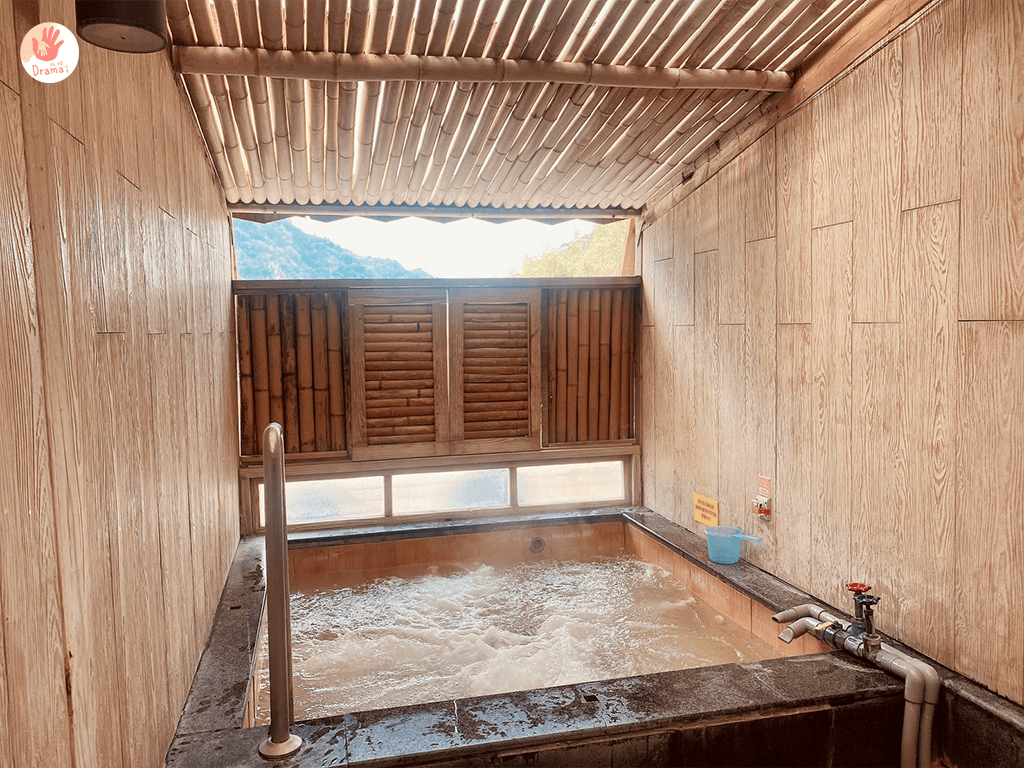 我們是晚上才抵達飯店,但因為抵達時已八點半,晚上是開放到九點,所以就沒有泡了,另外房間也是溫泉水,所以我們就選在房間泡