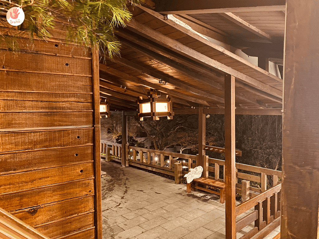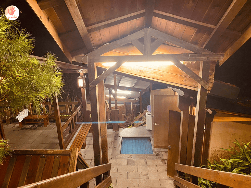 這裡的戶外泡湯要走小木廊道走到三樓,但晚上景色還蠻迷人的