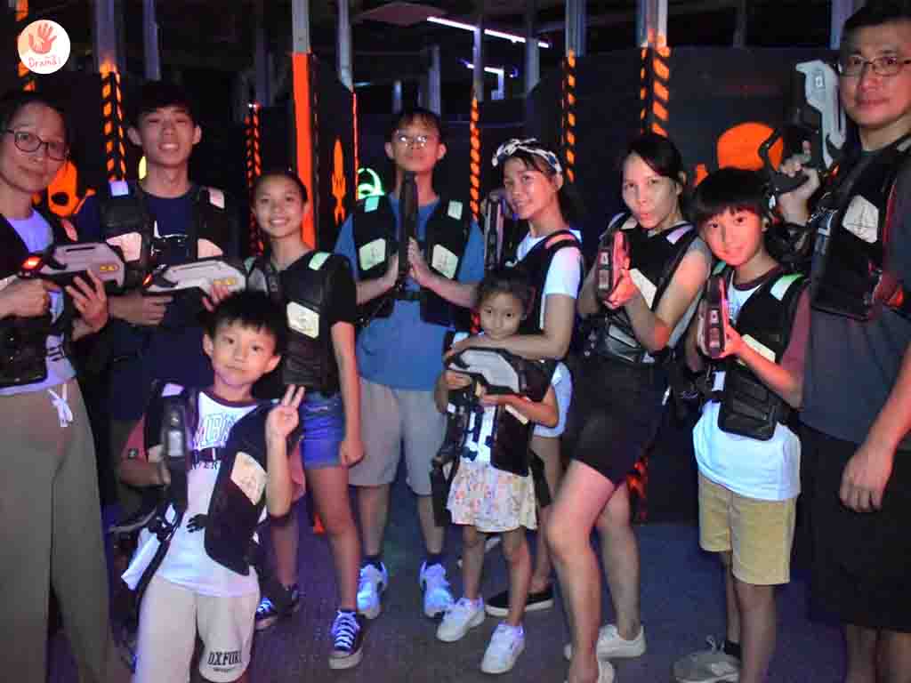 這次朋友揪玩[六度空間]我們總共十大六小玩到全身汗,一個小時大戰三回合,大人小孩/夫妻對戰全面開射,沒有子彈射到不會痛,小小童也樂在其中。