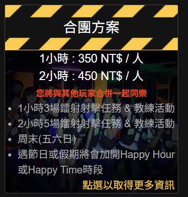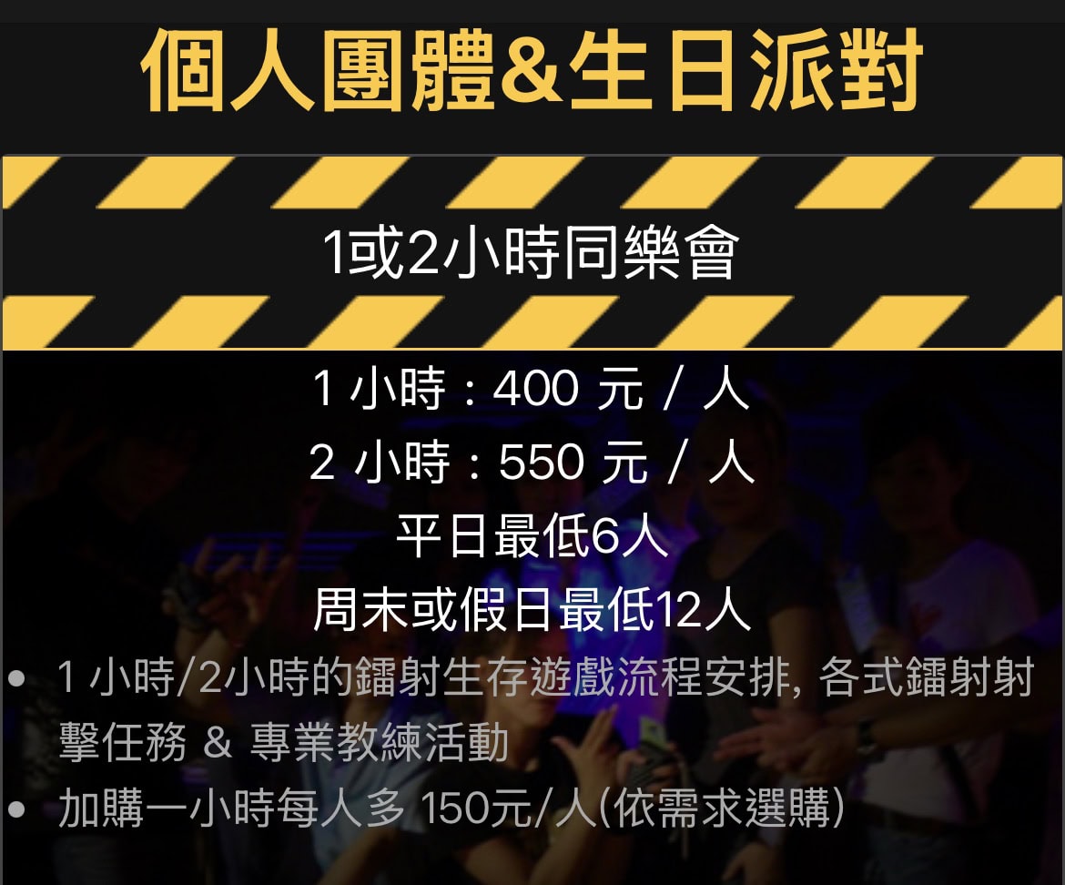 [六度空間]平日和假日的差別在於最低人數的限制,假日需12人,我們是玩一小時一人400元的方案,一小時可以玩到三回合,人多玩起來很high,很有趣推薦大家可以來玩~~~