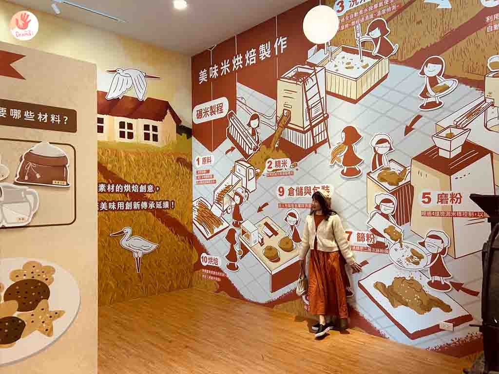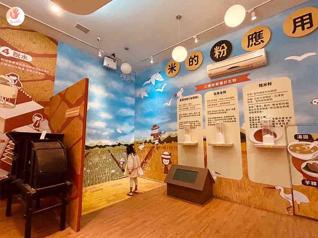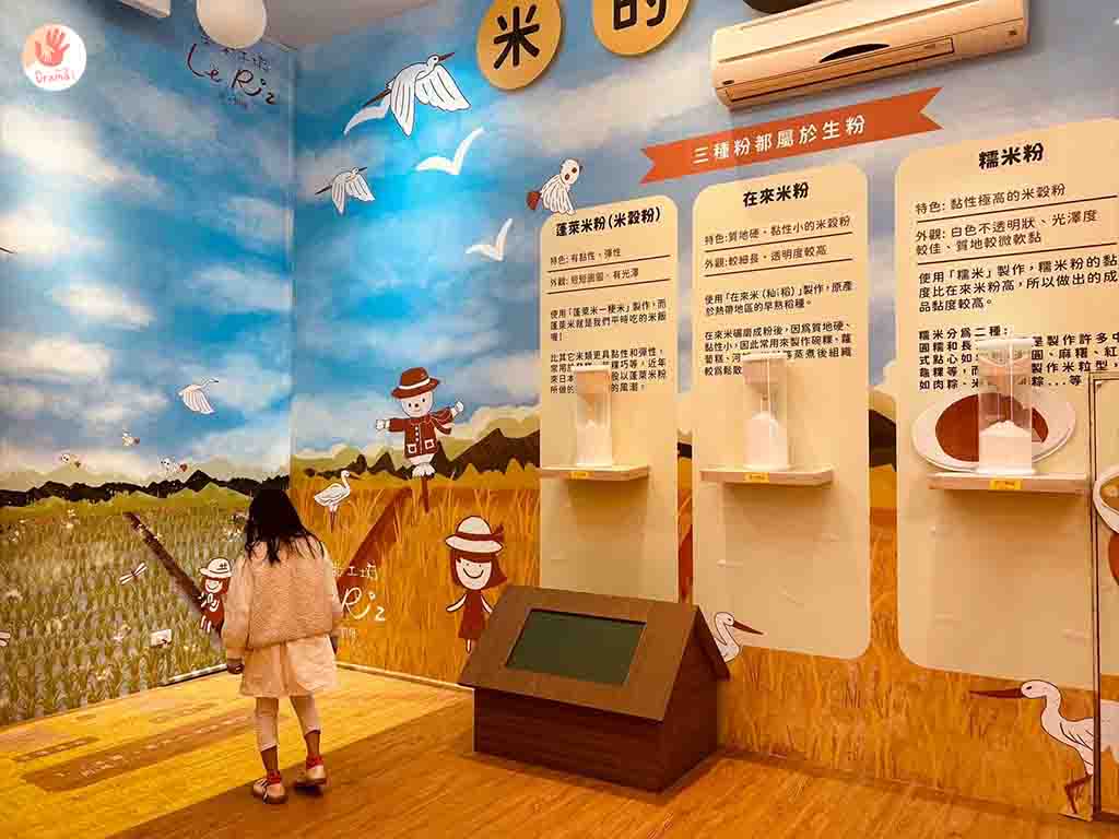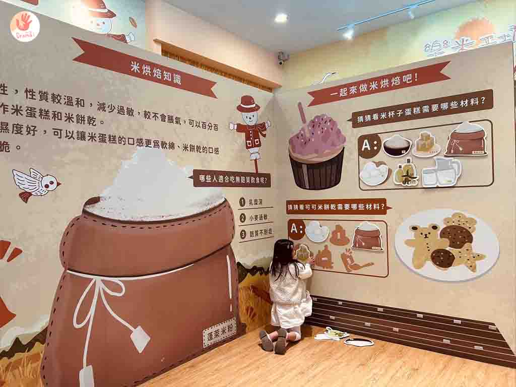 [樂米工坊]有規劃了一區互動的米故事館,透過互動問答可以更認識米的種類和延伸可以做的烘焙