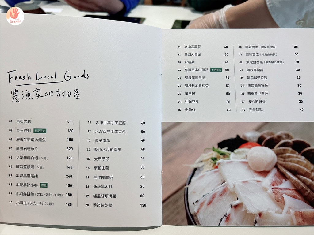[小山丘私廚火鍋]單價是偏中上的價格,菜盤都是原味食材沒有加工的火鍋料,若想點一些火鍋料這裡有單點嚴選南門市場的火鍋餃類