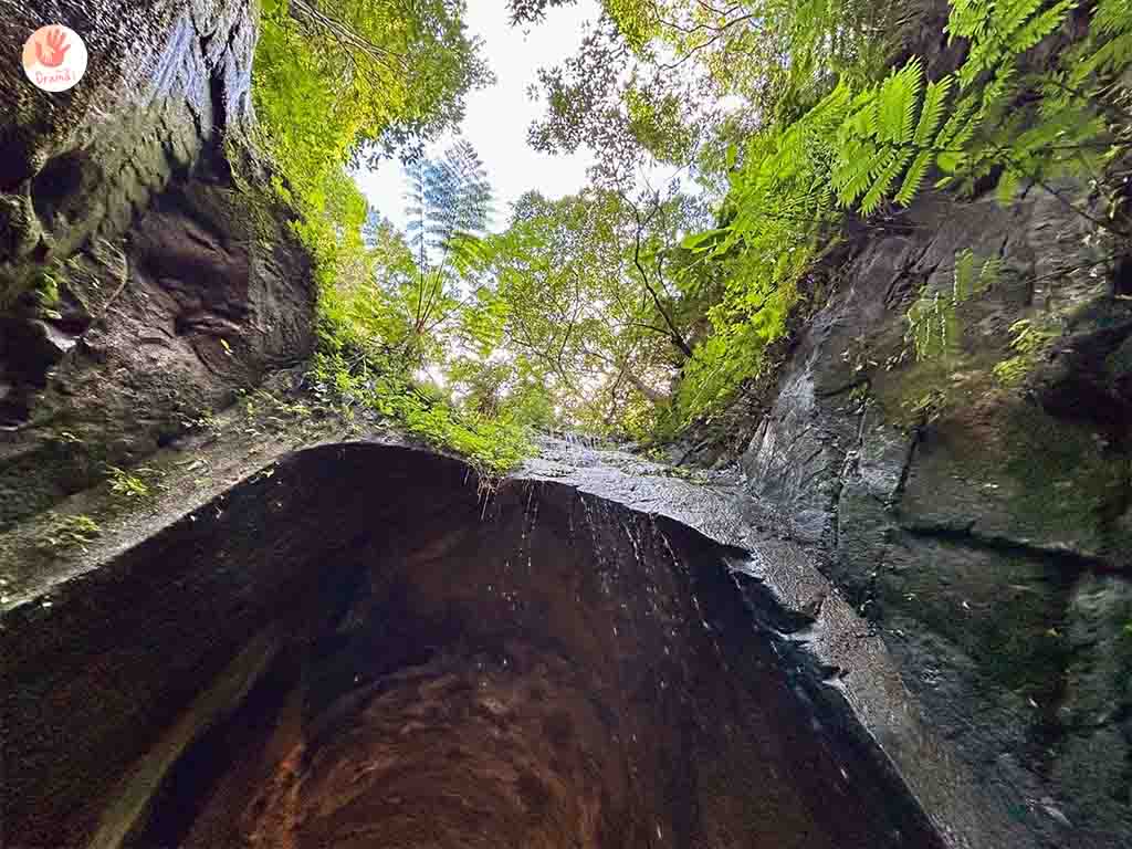[劉銘傳隧道]入口有一個自然形成很像水簾洞的感覺,小孩用跑的進入口都超興奮