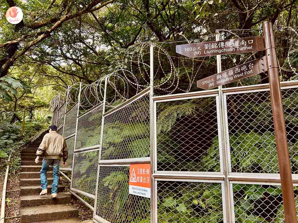 [劉銘傳隧道]大約步行10分鐘可以到達[獅球嶺西砲台],再走10分鐘可以往下山走到[劉銘傳隧道]北口,就是隧道的入口處