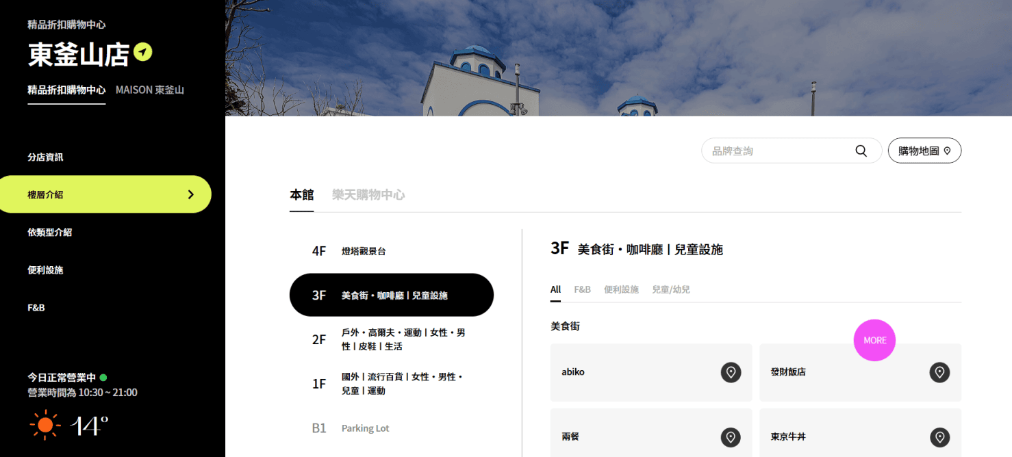 - 3F:餐廳、小吃、熟食店、兒童設施