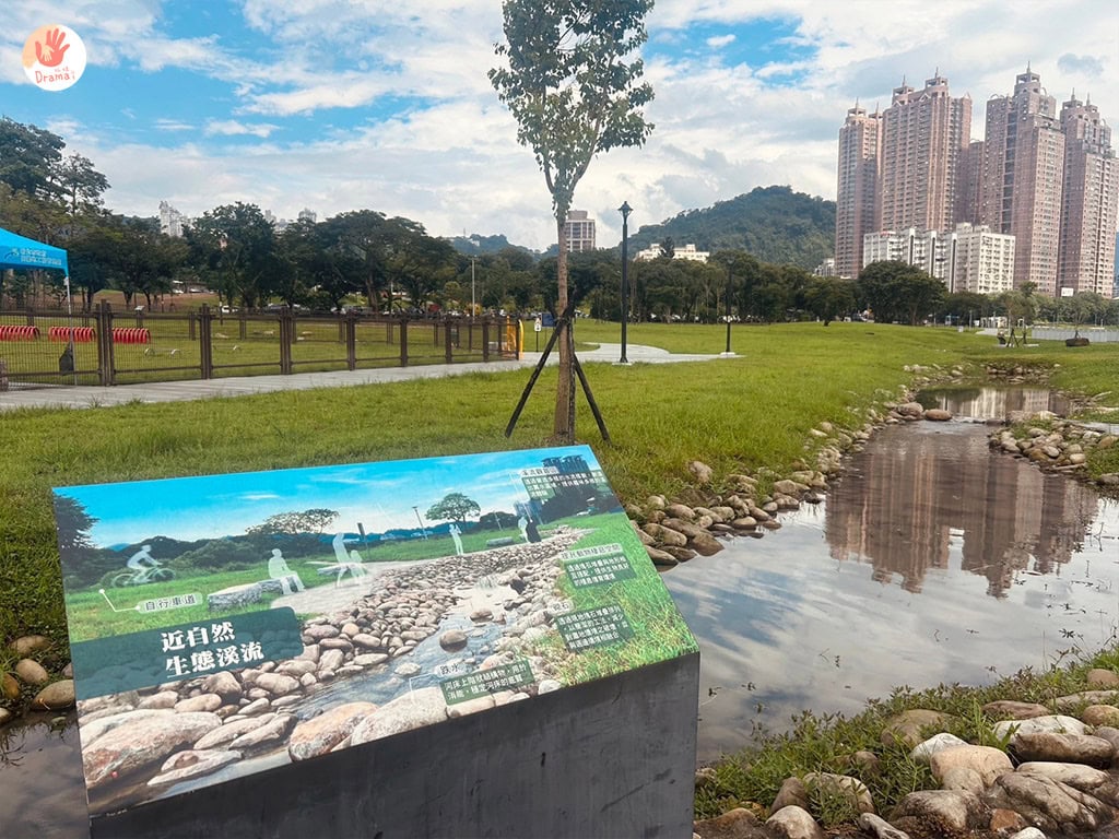 [親情河濱公園]旁邊就是擁有多種滑水道的[大新店游泳池],玩完泳池,也可以來到[親情人工溪流]體驗自然的人工溪流,搭配放電特色公園,帶上腳踏車,這裡玩整天一站多種滿足。記住來公園要噴防蚊液喲~~~
