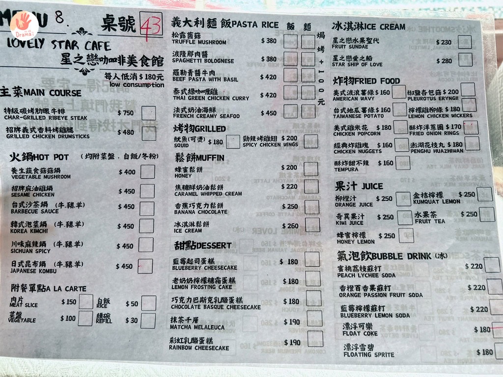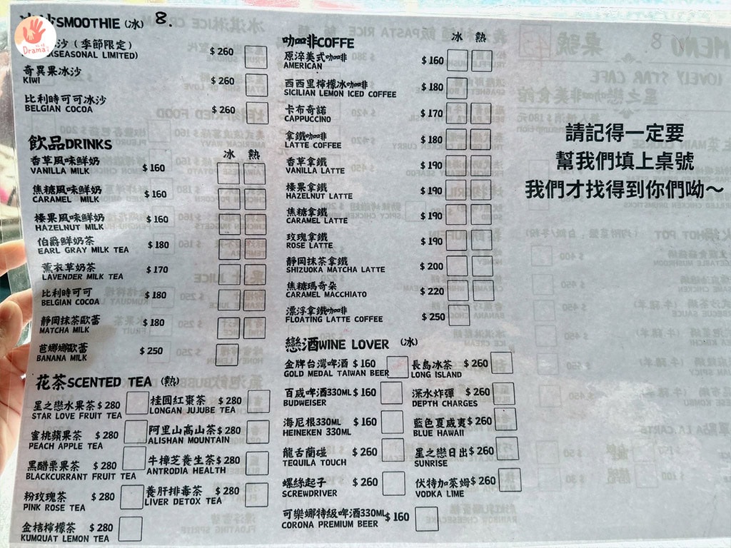 星之戀景觀咖啡|菜單及炸物上桌