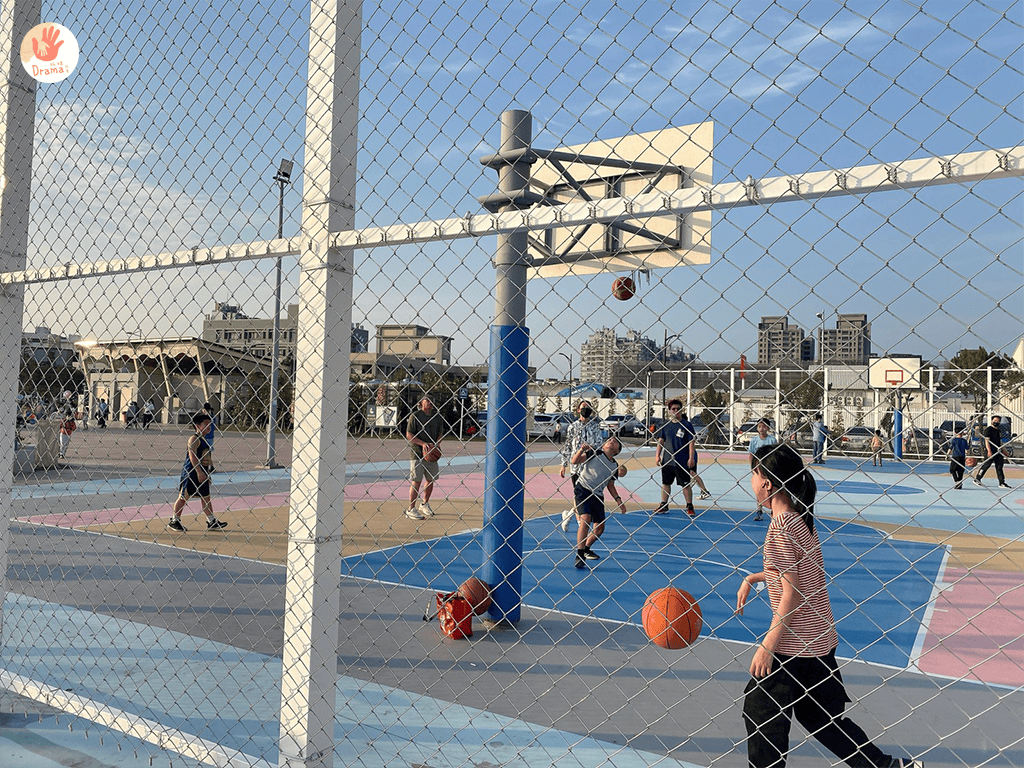 這裡也有籃球場周邊也有很多攤販,午後有吃又有玩的假日人氣景點