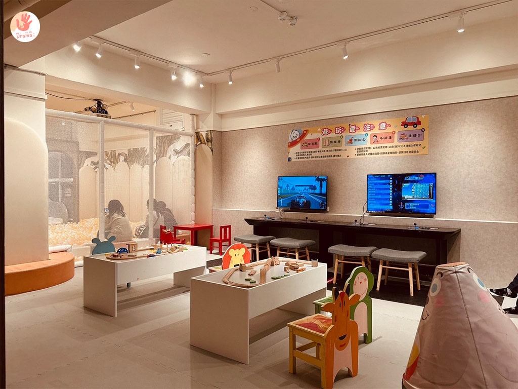 玩具和電玩區在一起,喜歡動態放電就到隔壁棚的溜滑梯球池區