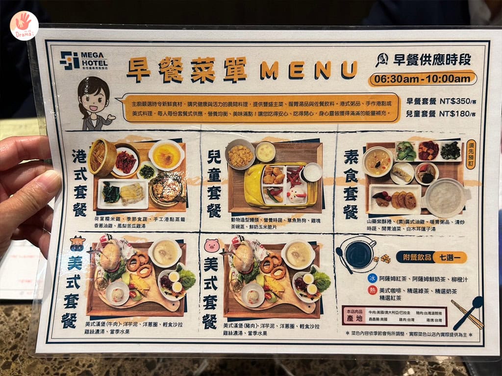 辦理入住會同步提供早餐菜單供選擇,港式套餐除了雞肉其他都很好吃,兒童餐還有送扭蛋玩具,整個小孩的心都被收買了