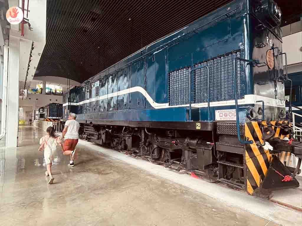 [苗栗火車頭園區]戶外逛完了室內也可以參觀多款火車展示,雖然不能走進火車車廂,但可以近距離看到不同款火車真的超酷的