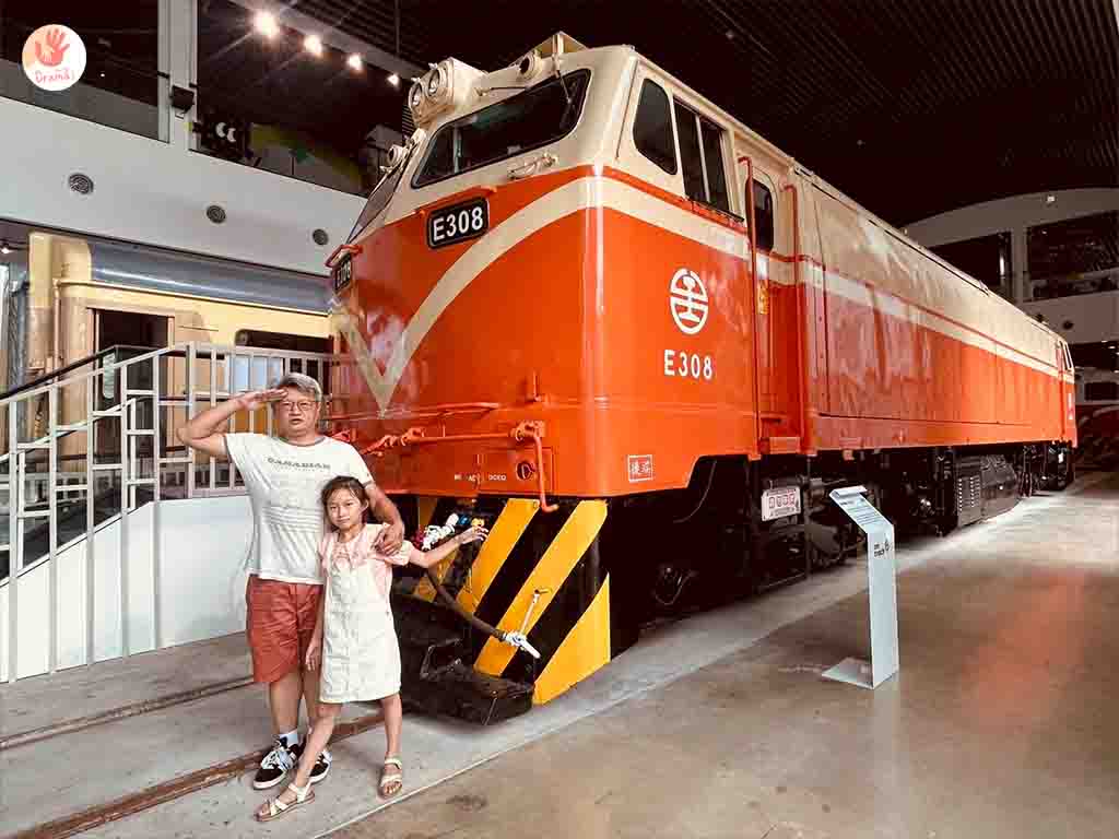 [苗栗火車頭園區]列車展示館展出12台珍貴火車頭,EMC1200型電聯車(紅斑馬)這款列車曾是自強號的代表車型,經歷改造後塗上了優雅的酒紅色線條,因此被暱稱為「紅斑馬」