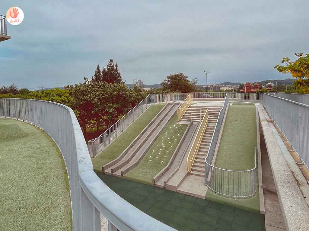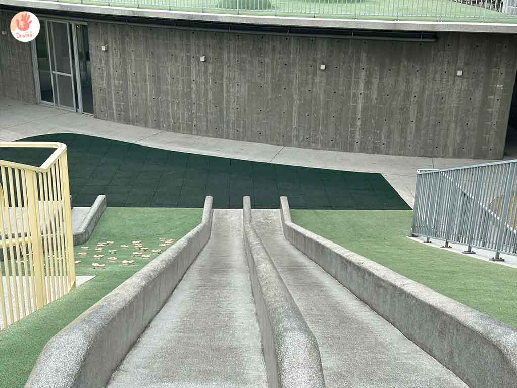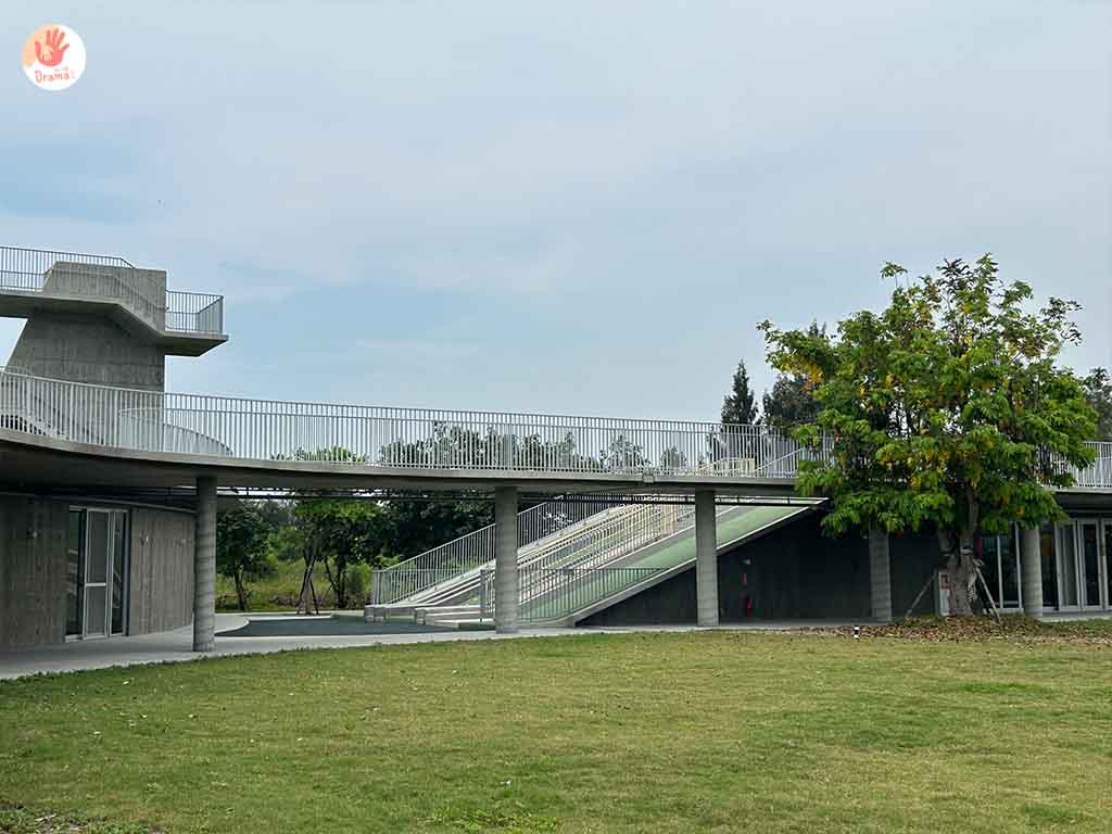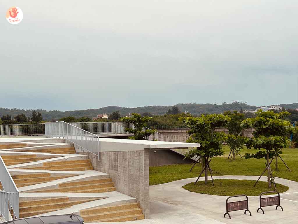 [那魯灣文化聚落]剛啟用時是很多網美族的最愛,因為清水模風格的建築物配上淺綠滑草區,視覺上就是文青風格美