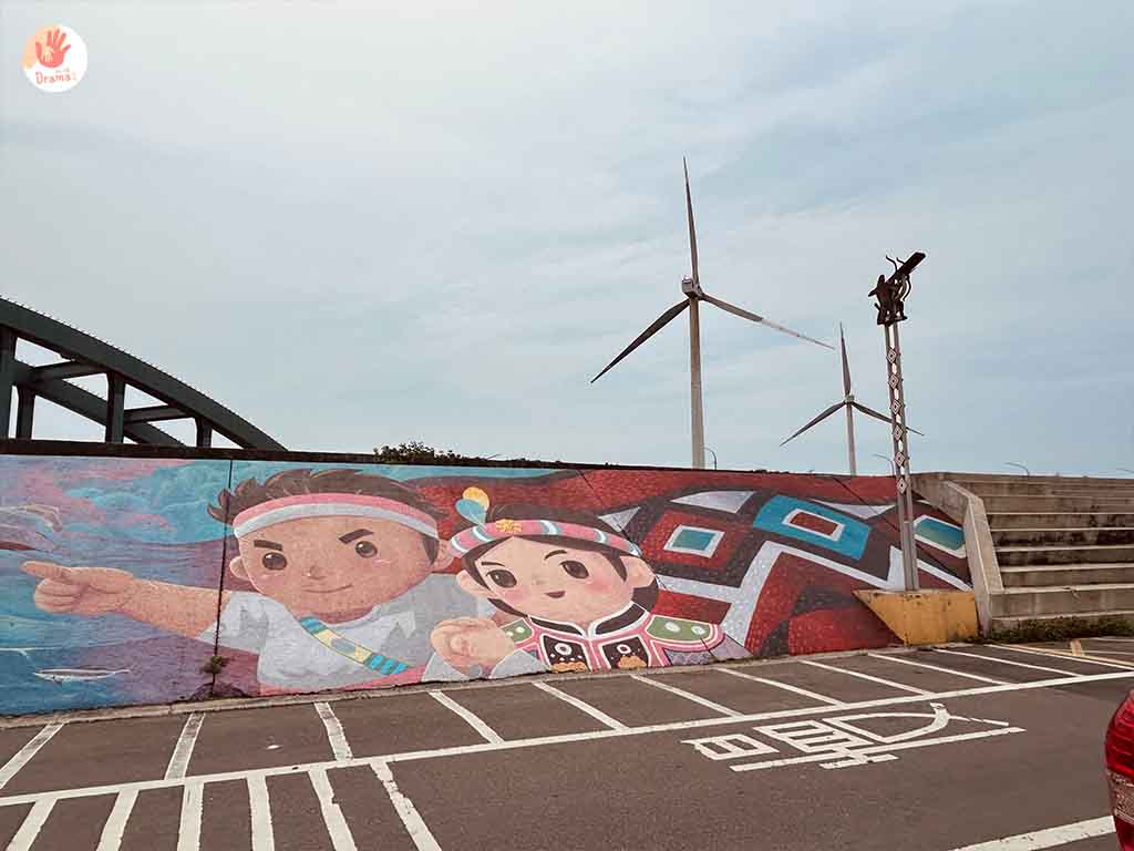 [那魯灣文化聚落]是台灣西海岸阿美族聚落,在部落堤防打造130平方公尺彩繪創作,畫上阿美族人來到那魯灣發展的歷程,也讓海岸線更添不同風貌。