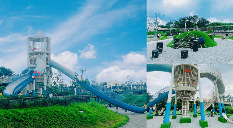水之丘主題公園。3層樓飼料桶溜滑梯。滑草。山丘攀爬。鞦韆。滑草。觀音親子景點。桃園親子公園。桃園觀音一日遊。鄰近冰店推薦(點這裡完整分享)