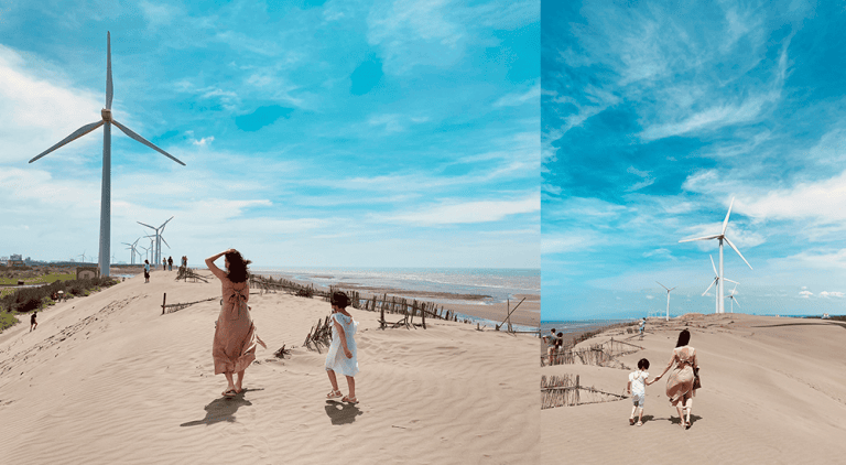 觀音草漯沙丘。台版撒哈拉沙漠。IG打卡點。親子戲水最好接近傍晚。觀音沙漠景點。桃園沙漠景點(點這裡完整分享)