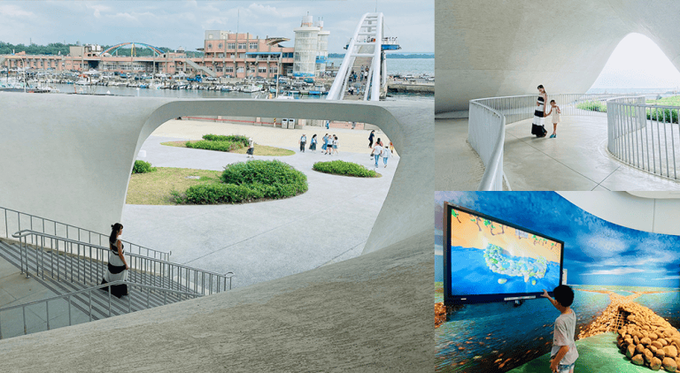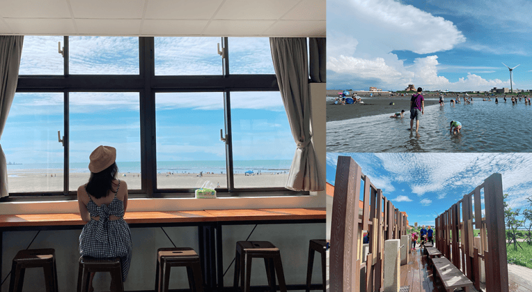 草漯沙丘。草漯沙丘觀音展示館。觀音濱海遊憩區。海景咖啡。五星級淋浴間。親子潮間帶。桃園親子玩水景點(點這裡完整分享)