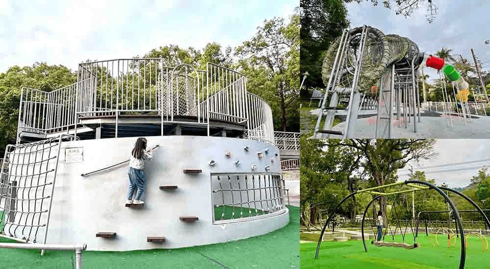[樂田公園]穿山甲意象遊具有攀岩和小幼級溜滑道,中大童會很愛平衡木的設施