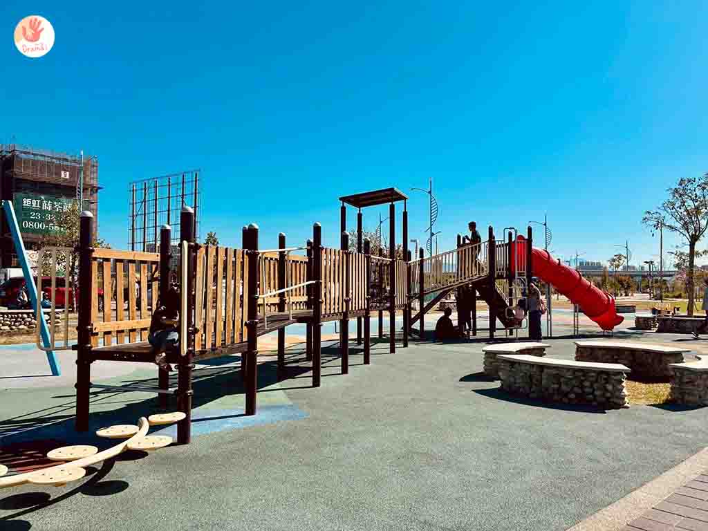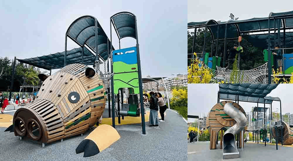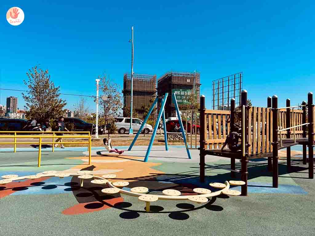 [樂田公園]以遊具設施打造穿山甲意象的主題公園,是不會有具體穿山甲的模樣,遊具設施沒有難度算是幼幼級,很適合中小童來放電