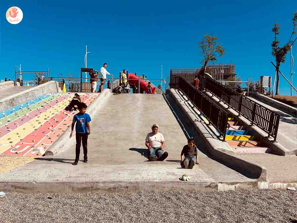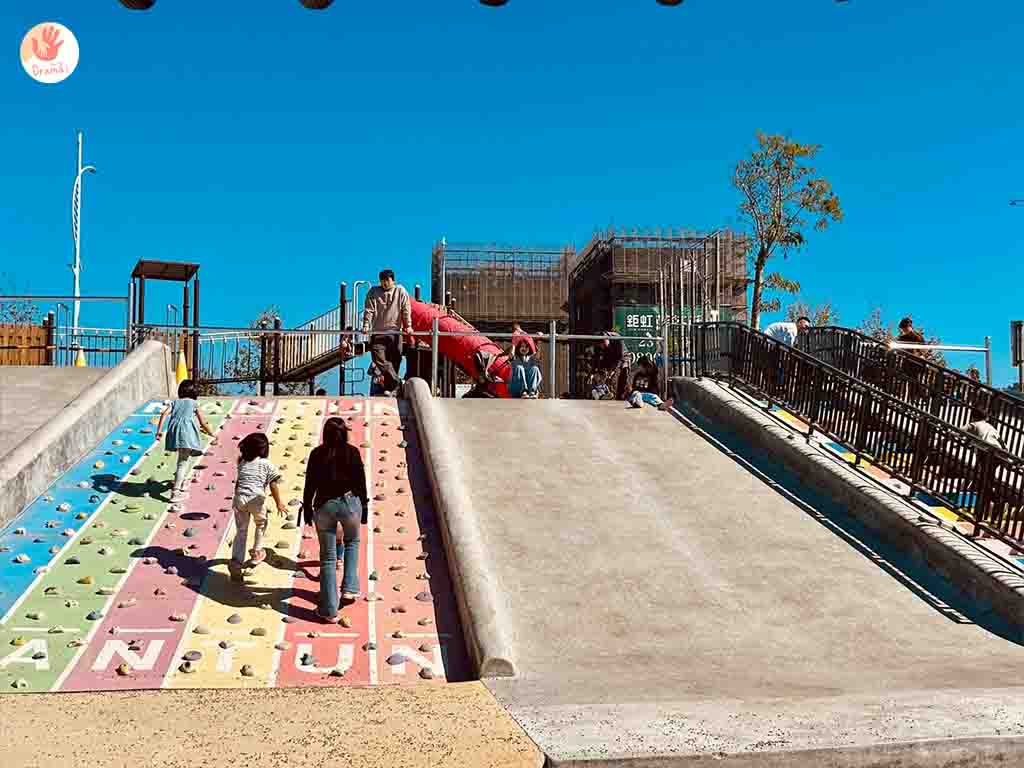 [樂田公園]另外還有磨石子溜滑梯,是大人小孩都可以一起暢玩的設施,坡度不會很陡小童來玩也不緊張