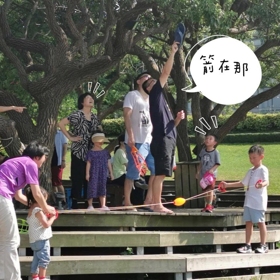 嗯哼~~這款玩具在草地上十個有九個是迪卡儂他們家的,因為他們的軟飛盤圖案可愛價格又好入手,所以撞飛盤也是常有的事,但那都不重要,重要的是爸媽也該起身動一動了