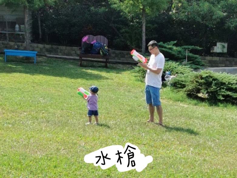 最後一個不要懷疑你的眼睛,就是水槍!!!天氣那麼熱,不灑水降溫小孩是很容易中暑的,適時的噴水有樂趣又可以消暑,帶上十把連環發射更過癮