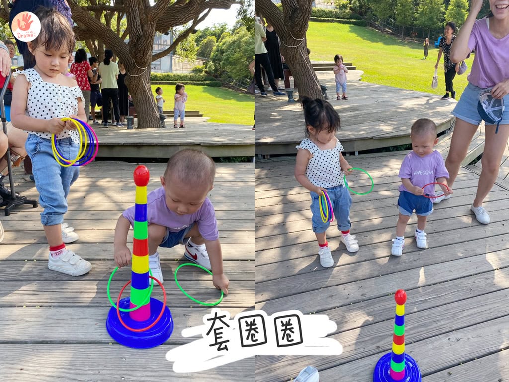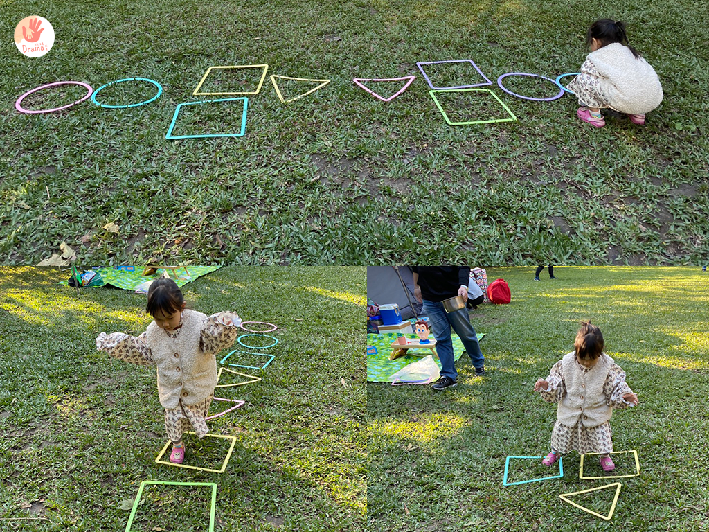 草地上也能玩跳格子,雙腳單腳還是無影腳,都可以玩上好幾回,這些我們童年的回憶一定要交棒給孩子呀