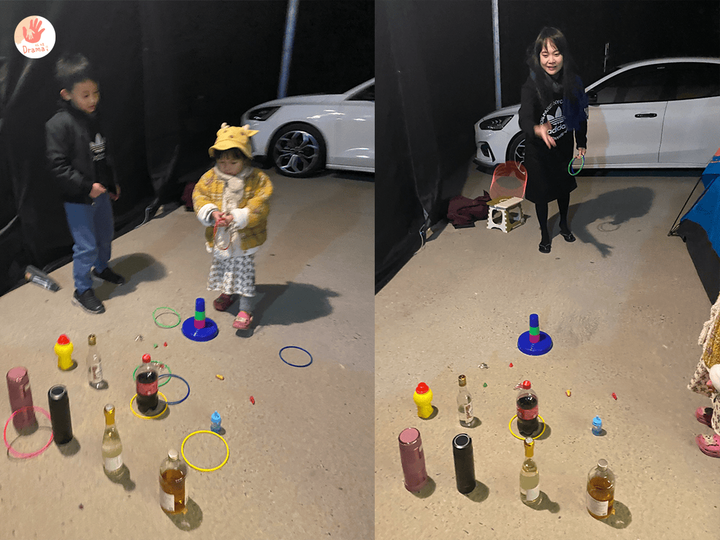 露營的時候,我們把所有的瓶子集合,重現夜市擺攤,大人小孩又是開心玩一波