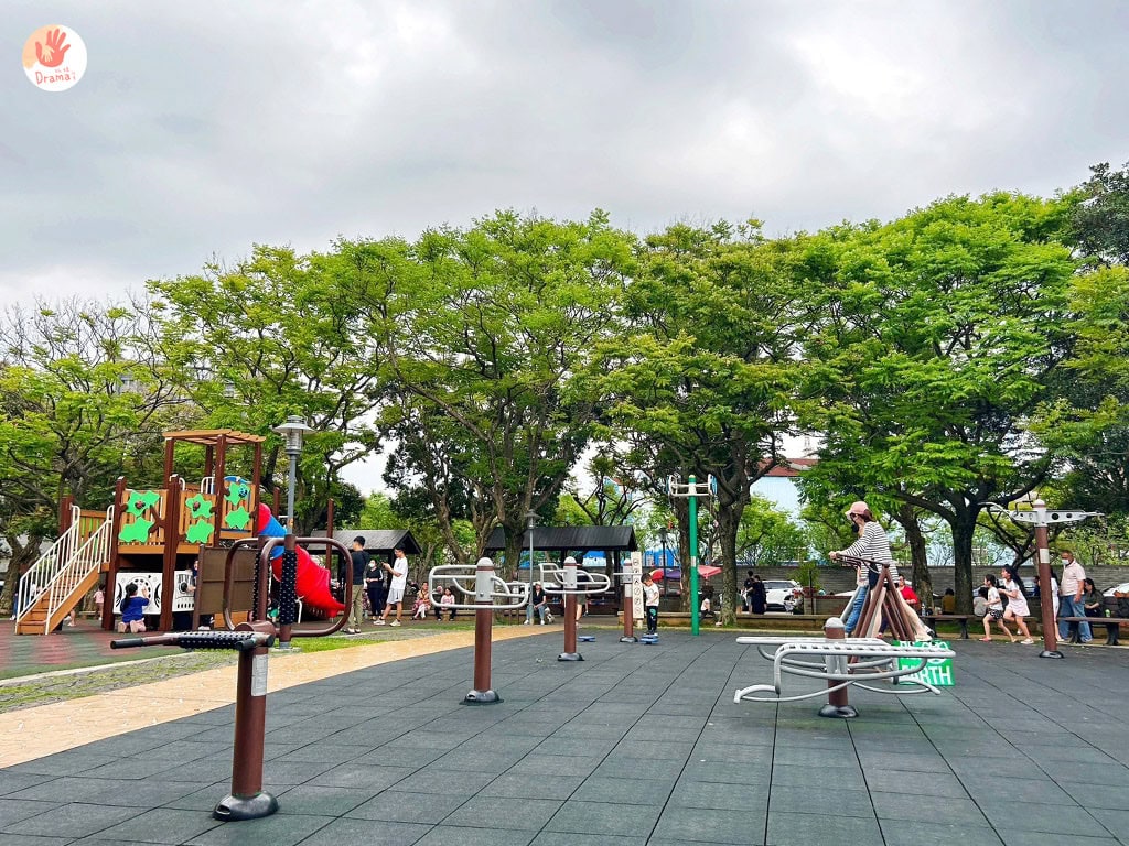 [大溪埔頂公園]的兒童訓練場,也設有健身區讓大人遛小孩也可以兼健身不無聊