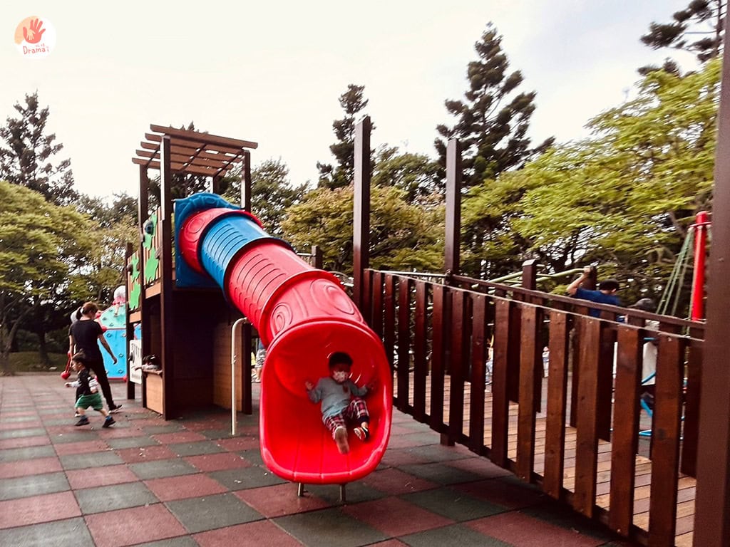 在滾輪區的前方步行3分鐘也有健身區和傳統遊具場