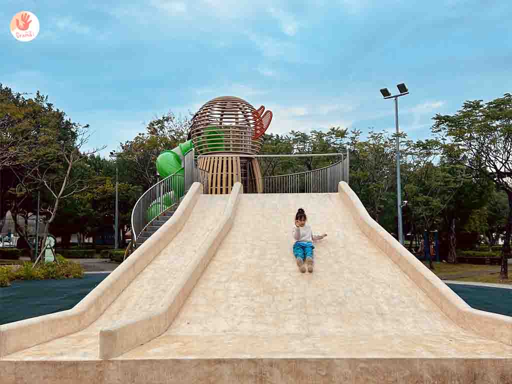 [尖山公園]磨石子溜滑梯速度不會太快,也很適合小幼童來玩