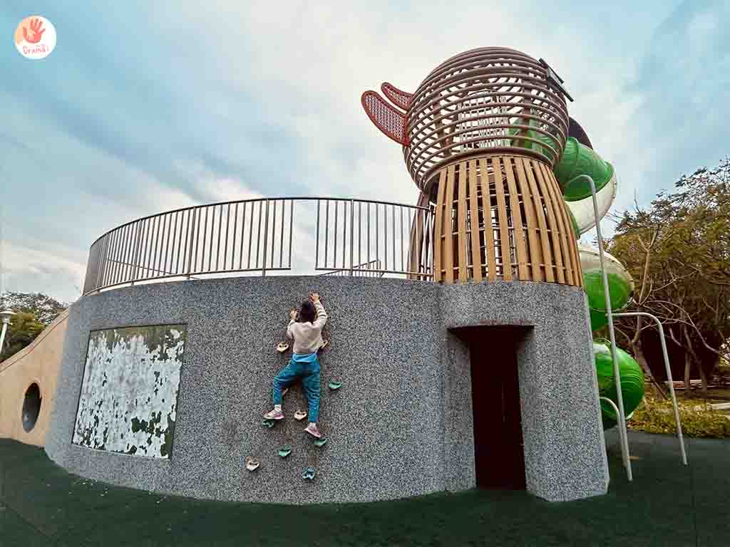外環圓設有攀岩,小孩可以挑戰~媽媽是看得很緊張