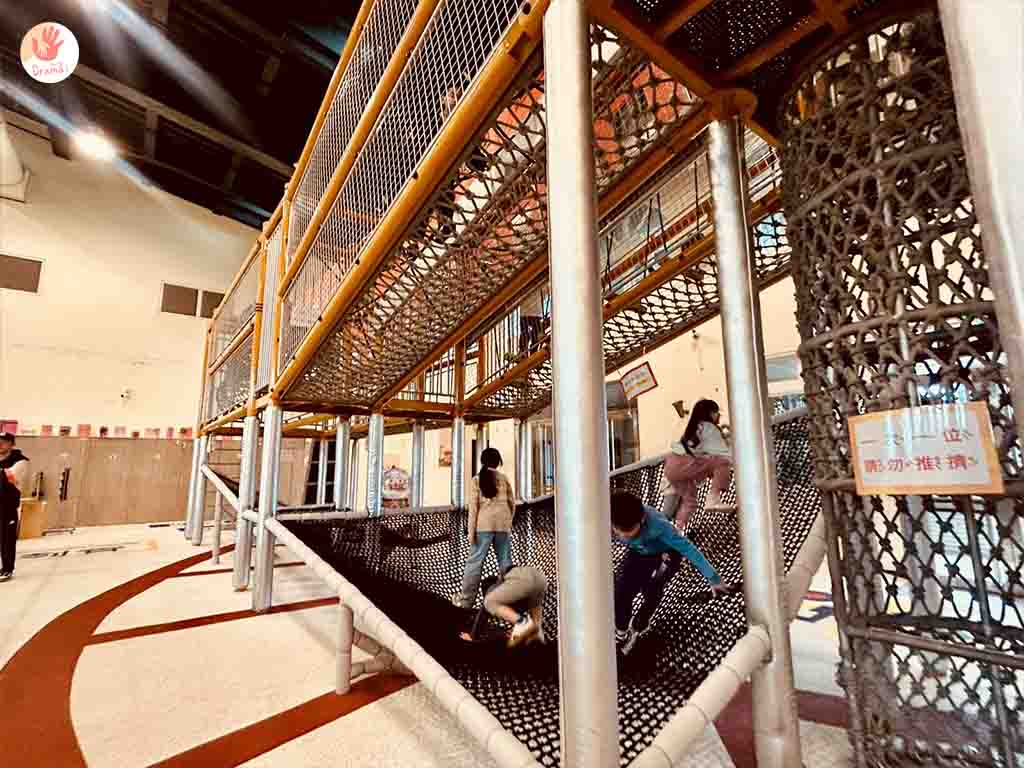 [七堵室內兒童樂園]考驗平衡也考驗臂力小肌肉~很多攀繩設施
