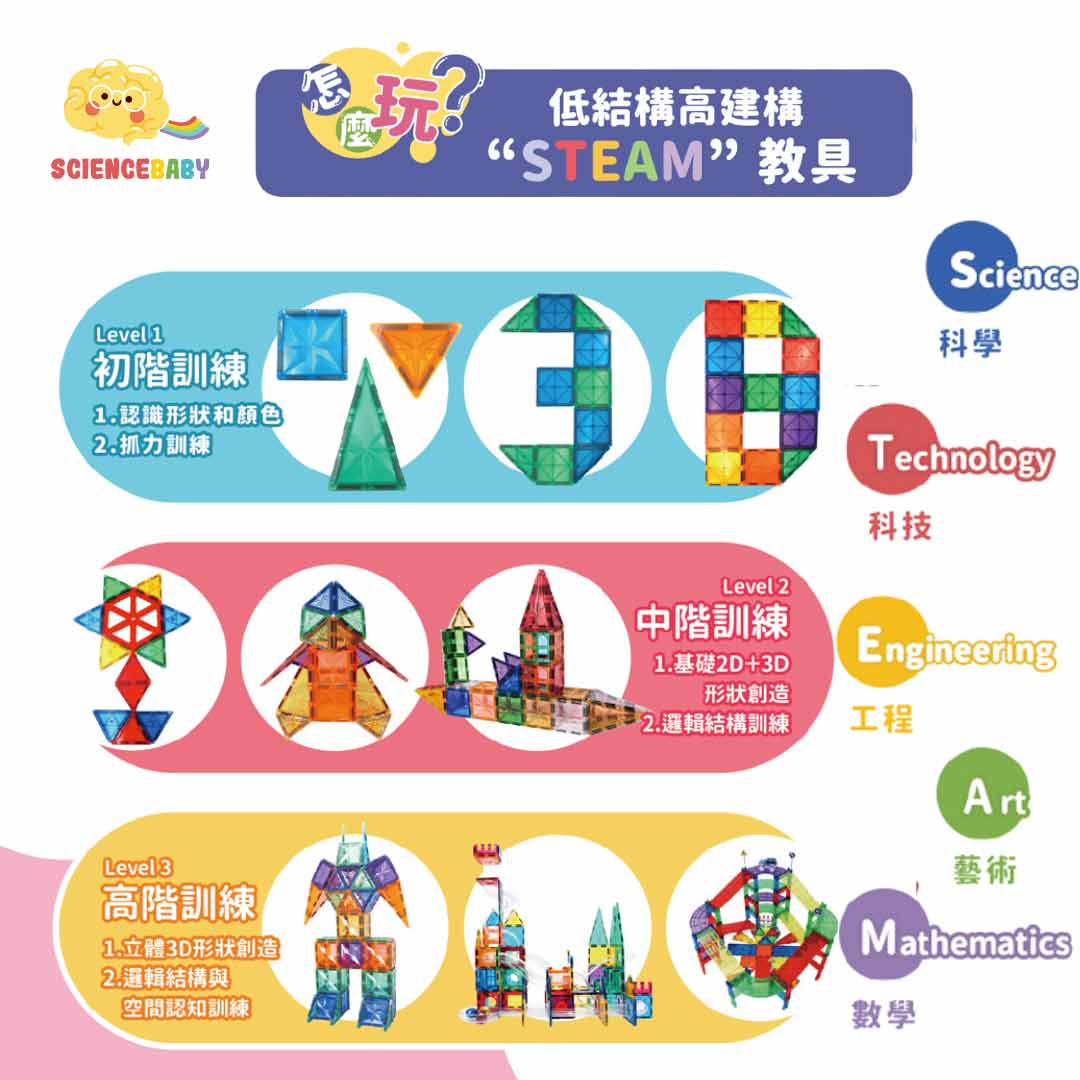 2-3歲玩[SCIENCE BABY磁力片]從玩顏色、認識形狀再到立體形狀,可以讓孩子學著一起跟著圖案完成數字或字母