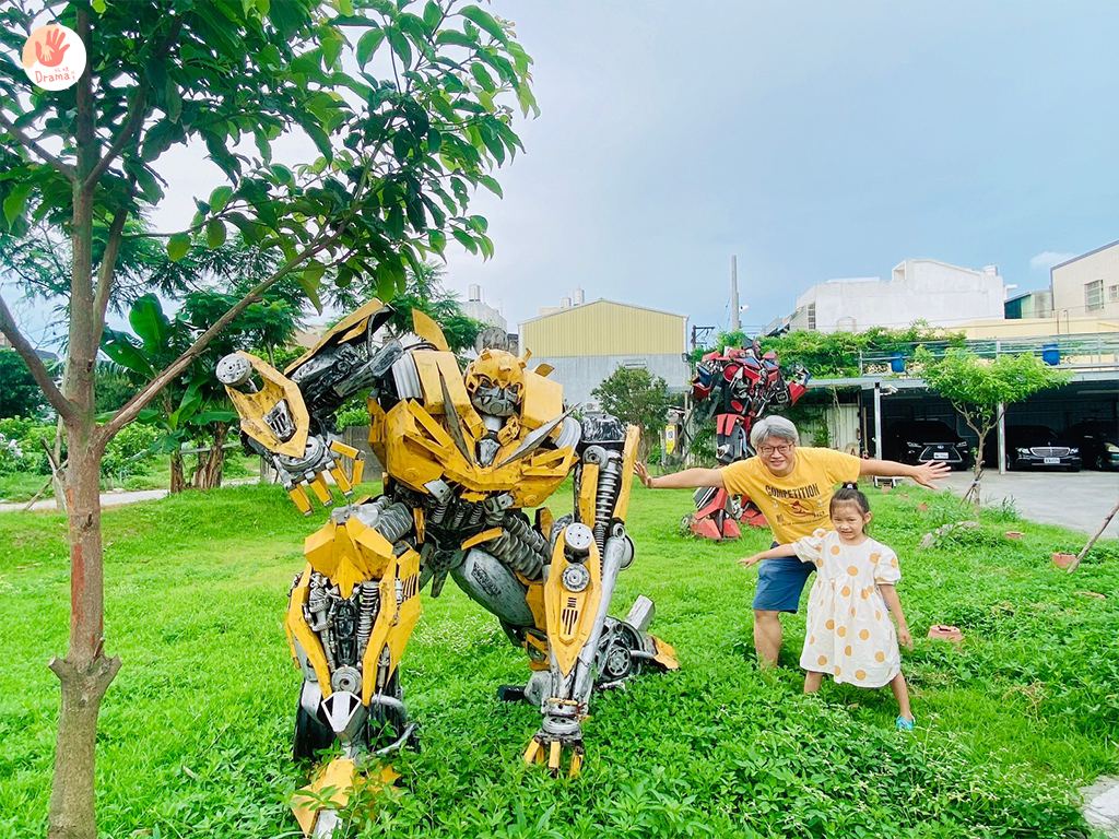 才下車就看到大黃蜂變形金剛整個就心情超好大的,大人小都跟著興奮著搶拍,入口處還有無敵鐵金鋼,實在是太帥的裝置造景了